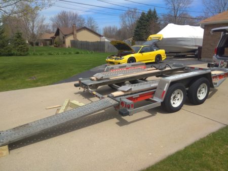 Your car’s broken. Again. What’re you going to tell your spouse/companion/parents!? More important than that, how are you going to get home? How about another scenario, you’re trying to get your car to the track, but she isn’t exactly road-legal.. Now what? Well, you’re going to have to get your car on a trailer! I can already hear some of you telling me how your car is lowered, and it’d never go on a trailer. Well, I got mine on a U-haul trailer, and had 3″ of ground clearance.. three feet in front of the wheels!
