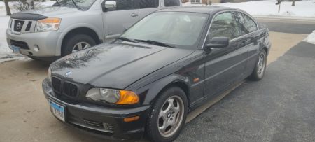 We know, we only just got the KA-T 240sx! However, being the completely responsible people we are, 240Drift has purchased another car to work on while the KA-T is in storage: a 2001 BMW 330ci. Despite having 150k miles, we are the third owners of the car, with the first and second both being elderly gentlemen. The car runs incredibly smoothly and strongly, effortlessly slides in and out of all gears, and is bone stock. The best part is, we got this car for $1,800, a steal! Frankly, the exterior has some damage (paint scuffs, trim under the headlight missing, broken reflector), but for the money, this was an incredible buy!
