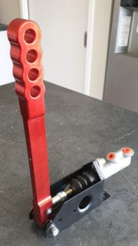 While I recommend using this handbrake, their instructions for installing it are.. questionable. The most simple and best functioning way to install a hydro is to get dual caliper mounts. This allows for a second set of brake calipers to be installed on the rear wheels. The stock calipers are still connected to the main braking system, untouched by our new handbrake. The second caliper is solely connected to your handbrake, no auxiliary electronics needed. With this setup, you can just clutch in and grab the wand, and you’ll lock the rears right up.